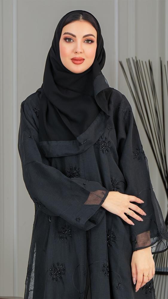 تعد عباية شيفون مبطن بشك هندي رمزًا للأناقة والرقي بلمسة عصرية فريدة. تجمع هذه العباية بين فخامة الشك الناعم اذي يضيف تفاصيل جذابة وانسيابية مثالية.