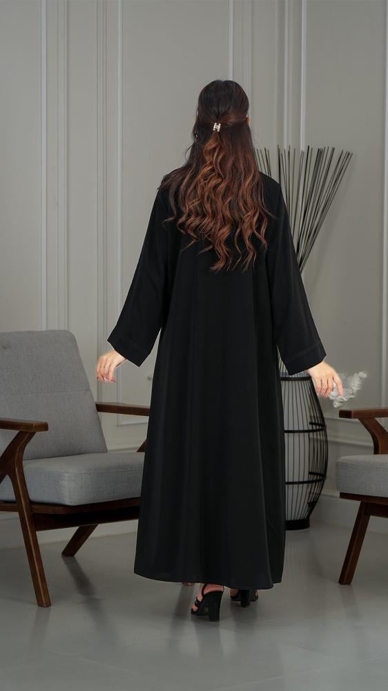 اختاري البساطة الفاخرة مع عباية كريب ملكي أسود بتصميم أنثوي أنيق. هذه العباية الصيفية مثالية لكل من تبحث عن إطلالة راقية وعملية بجيوب مخفيه ،حيث يجمع التصميم بين انسيابية القماش الأسود الفخم وراحة القصة الواسعة.
