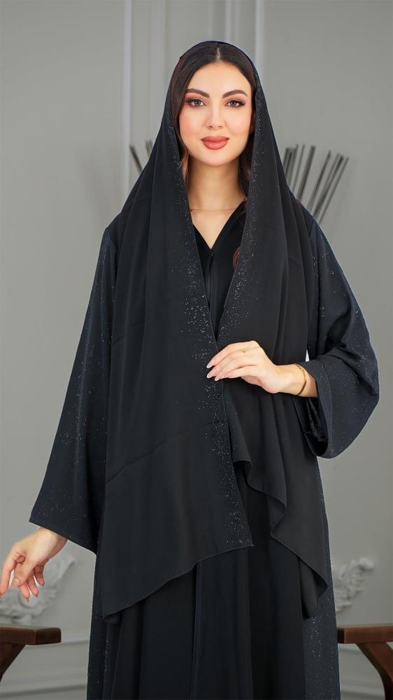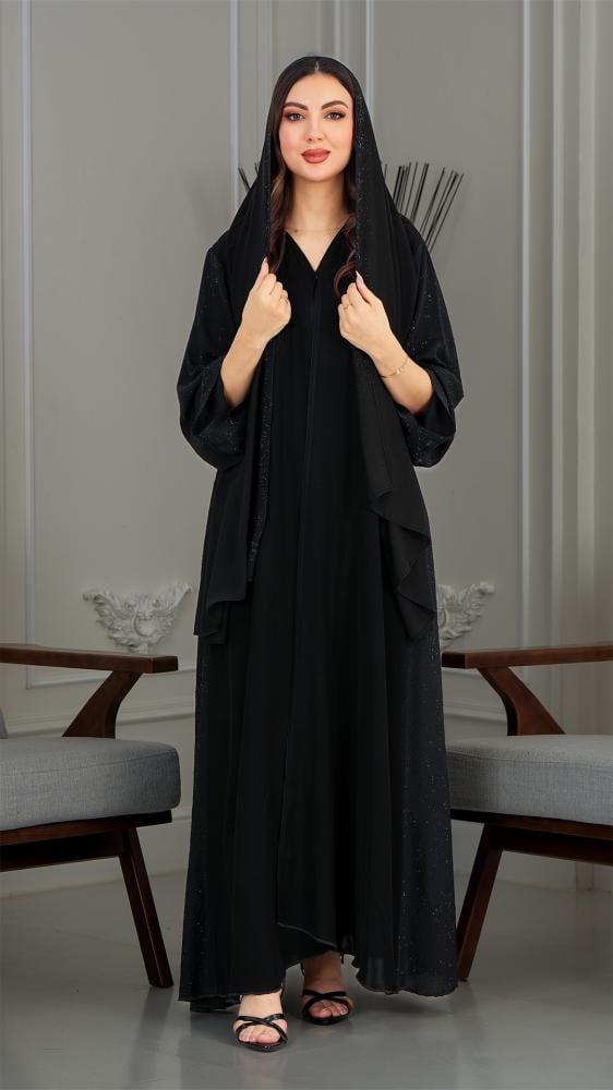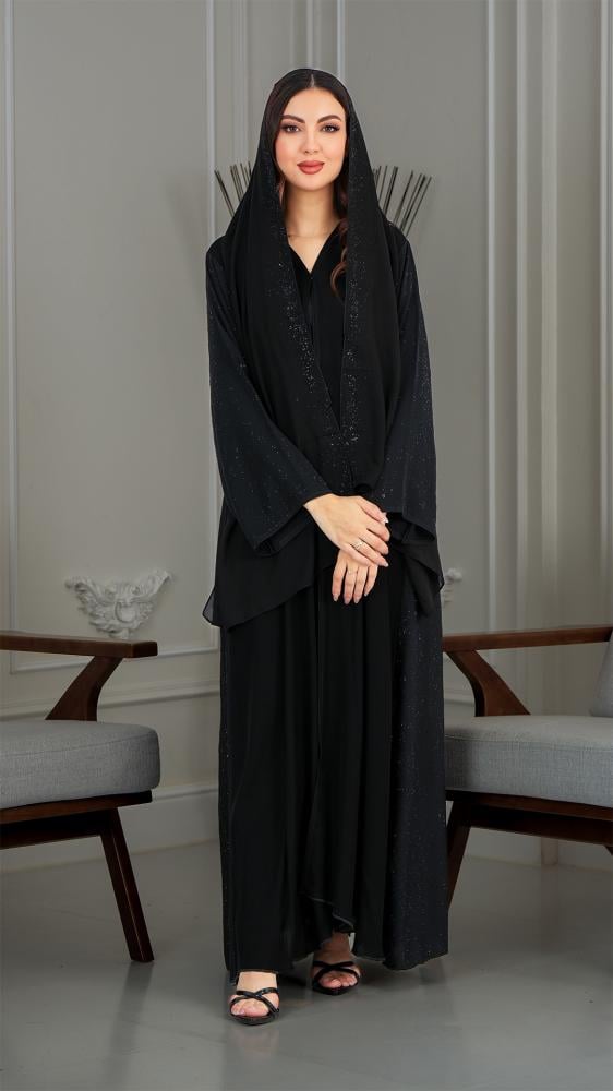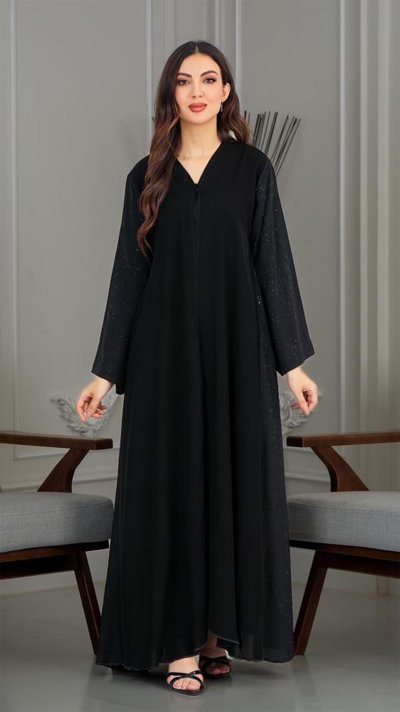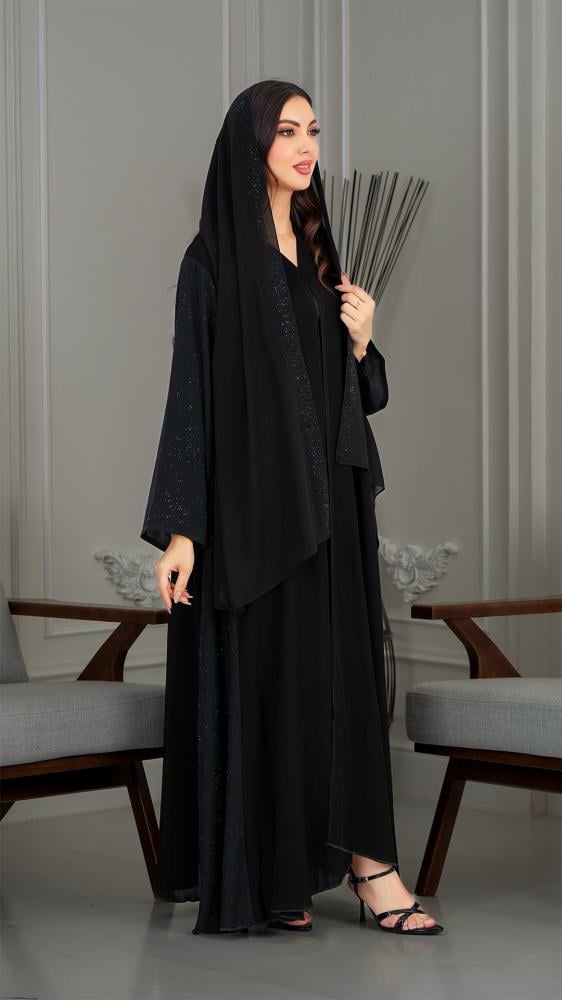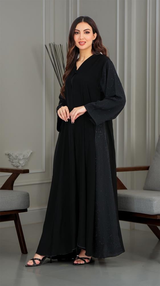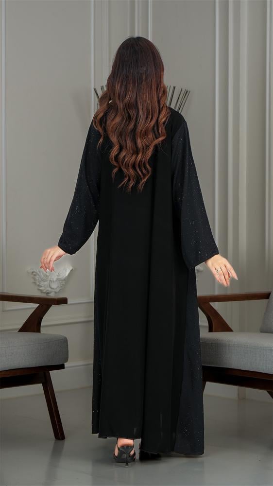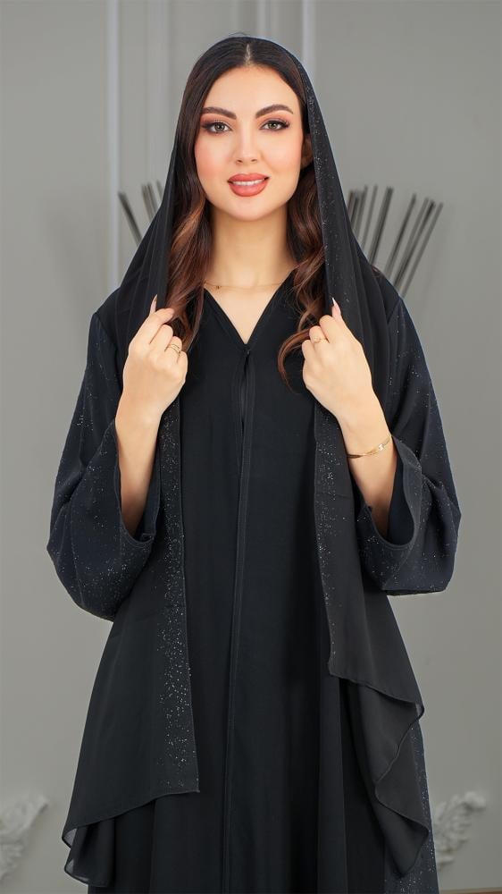 عباي كريب واقف مزينه بقيطان ابيض وازرارا فالاكمام باللون الابيض نوع القفله طقطق