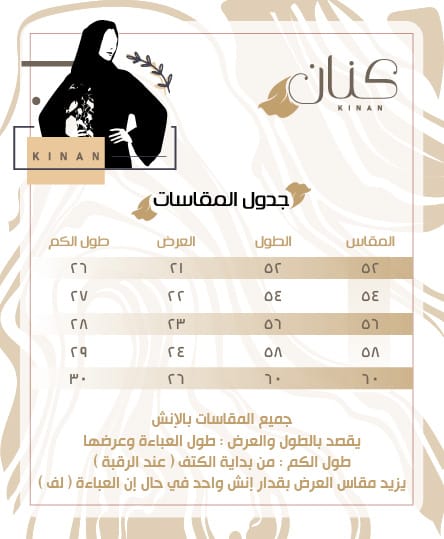 <p>ابداع التصاميم . واقمشه فاخره . وخياطة ماهره . باسعار ممتازه اجتمعت في كنان</p>